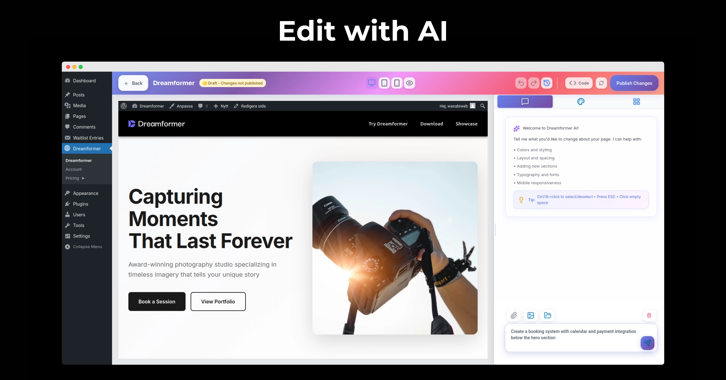 Dreamformer utvecklades för att fylla detta gap – genom att applicera AI där majoriteten av webben redan finns och göra WordPress-ekosystemet snabbare och enklare att använda.